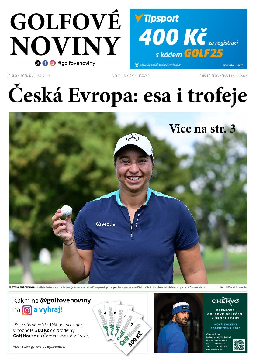 Číslo 8/2025 je již nyní zde na stránkách, od 17. října pak v tištěné podobě zdarma na golfových hřištích, indoorech a golfových obchodech. Sleduj @golfovenoviny na Instagramu a vyhraj! Další tištěné GN vychází 5. prosince 2025.